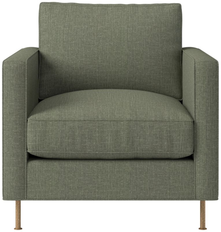 Assembled in North Carolina, velvet chair by Los Angeles-based AD100 designer Ross Cassidy evokes the clean lines of early 20th-century French industrial design. The silhouette features a shelter back and plush cushions with a defining contrast welt trim. A modern classic, the chair is covered in jade velvet made by JB Martin, an award-winning South Carolina textile mill that has been family-run for six generations. CB2 exclusive.