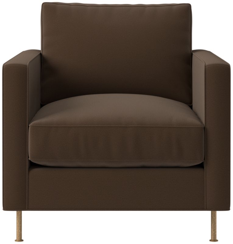 Assembled in North Carolina, velvet chair by Los Angeles-based AD100 designer Ross Cassidy evokes the clean lines of early 20th-century French industrial design. The silhouette features a shelter back and plush cushions with a defining contrast welt trim. A modern classic, the chair is covered in jade velvet made by JB Martin, an award-winning South Carolina textile mill that has been family-run for six generations. CB2 exclusive.