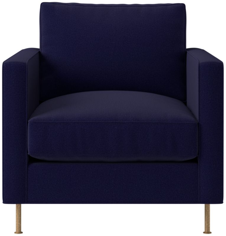 Assembled in North Carolina, velvet chair by Los Angeles-based AD100 designer Ross Cassidy evokes the clean lines of early 20th-century French industrial design. The silhouette features a shelter back and plush cushions with a defining contrast welt trim. A modern classic, the chair is covered in jade velvet made by JB Martin, an award-winning South Carolina textile mill that has been family-run for six generations. CB2 exclusive.
