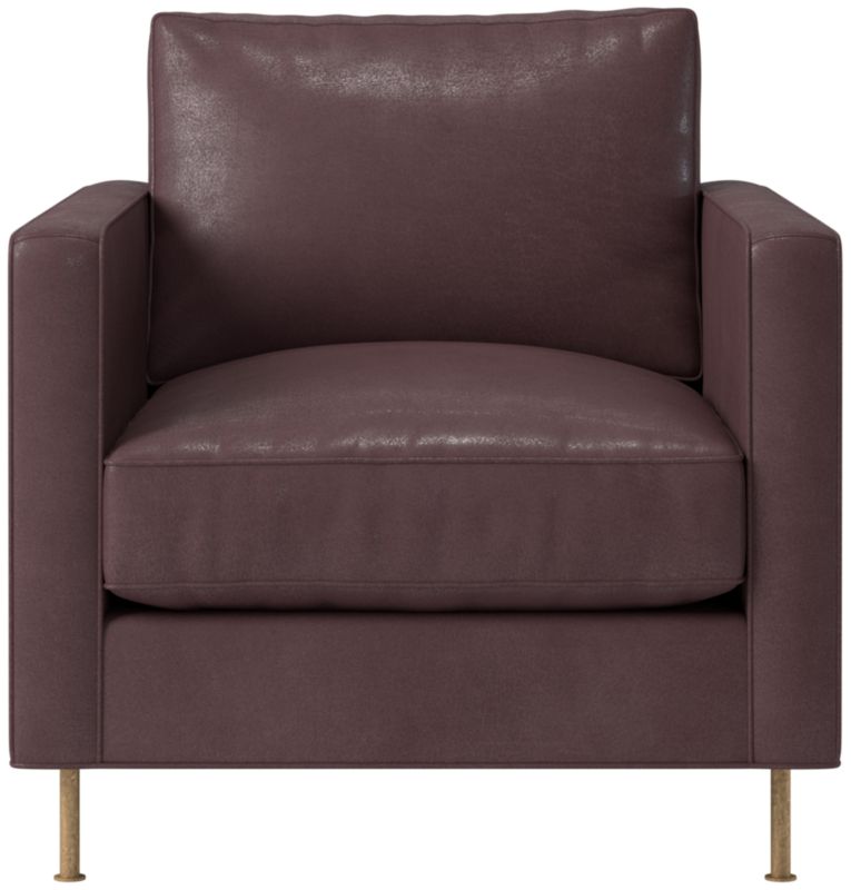 Assembled in North Carolina, leather chair by Los Angeles-based AD100 designer Ross Cassidy evokes the clean lines of early 20th-century French industrial design. The silhouette features a shelter back and plush cushions with a welt trim. CB2 exclusive.