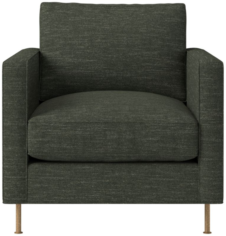 Assembled in North Carolina, velvet chair by Los Angeles-based AD100 designer Ross Cassidy evokes the clean lines of early 20th-century French industrial design. The silhouette features a shelter back and plush cushions with a defining contrast welt trim. A modern classic, the chair is covered in jade velvet made by JB Martin, an award-winning South Carolina textile mill that has been family-run for six generations. CB2 exclusive.