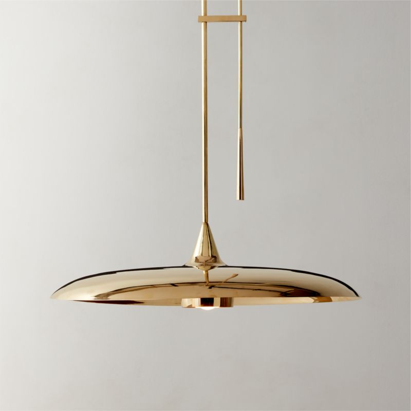 Studio Anansi strikes the right aesthetic balance. Slightly oversized shade directs light downward (an especially useful choice for positioning above countertops) while the tapered handle enhances the silhouette. Fabricated from polished unlacquered brass, its finish will develop a beautiful patina over time. CB2 exclusive.