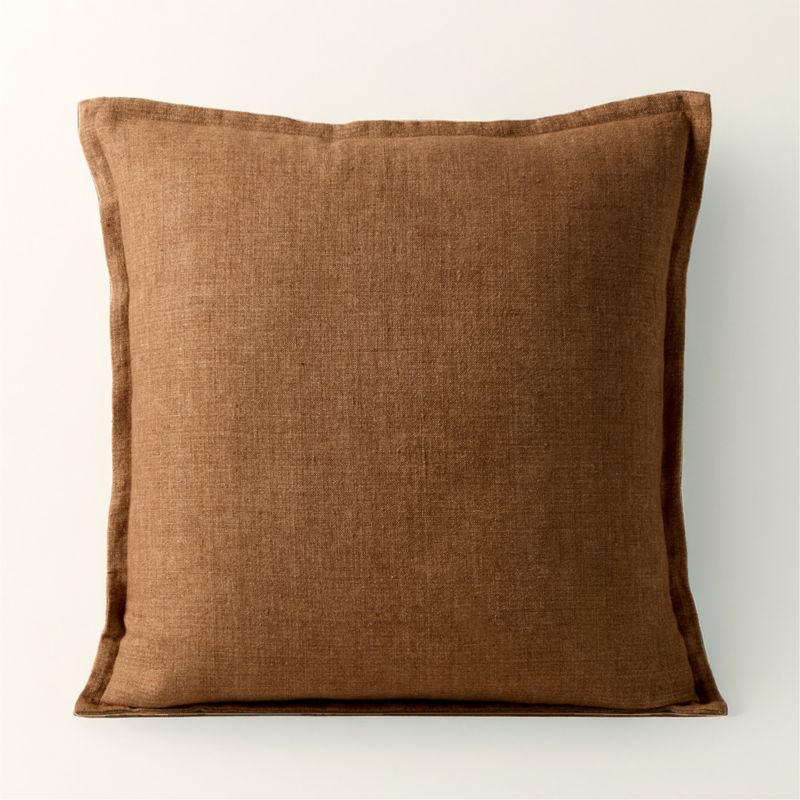 Transform your space with the help of our talented designers. Book NowCrafted from 100% flax linen, tawny brown throw pillow cover reveals the quiet artistry of délavé garment dyeing—a technique that oxidizes pigment to achieve soft tonal variations and a subtle melange effect. The result is a gently textured surface that feels refined and relaxed. Naturally breathable linen offers a lightweight hand that becomes even softer over time. Finished with a flange edge, this reversible design styles effortlessly in any space. Each piece is uniquely one-of-a-kind, bearing the beautiful nuance of its artisanal dyeing process. CB2 exclusive.