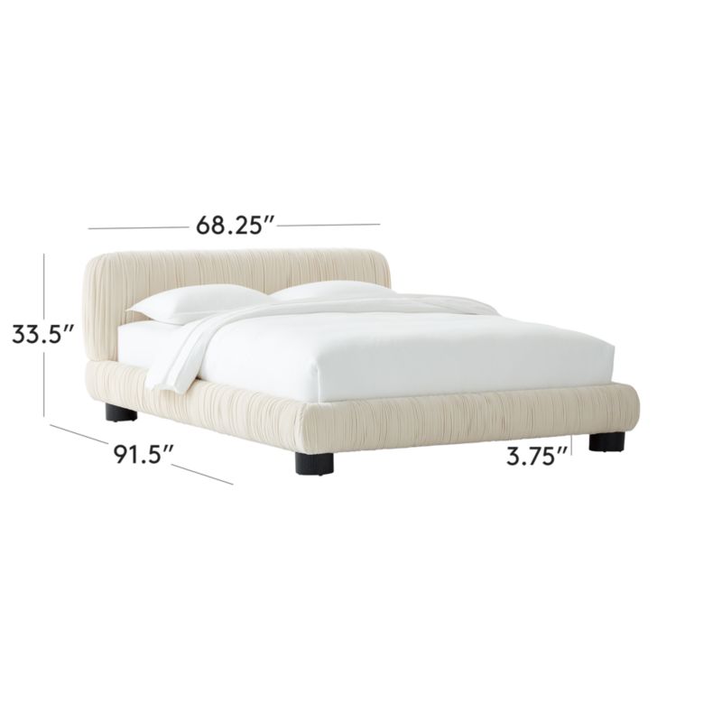 Cantar Ivory Velvet Upholstered Queen Bed33.5height68.25width91.5depthMeasurements are in inches.