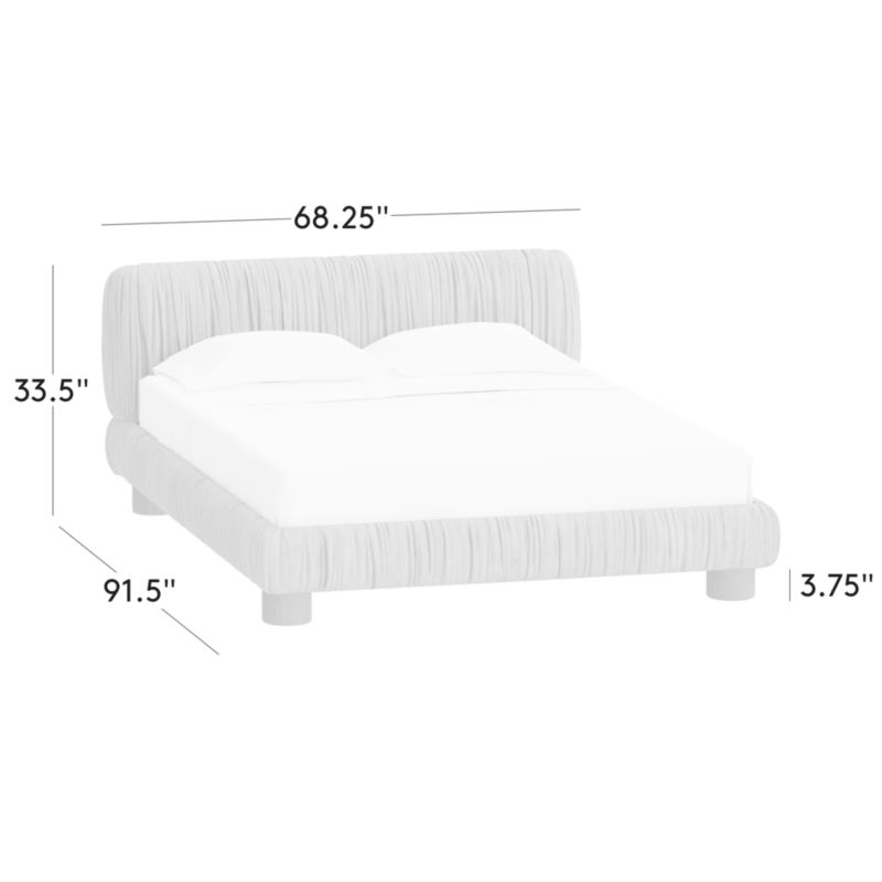 Cantar Warm Grey Velvet Upholstered Queen Bed33.5height68.25width91.5depthMeasurements are in inches.