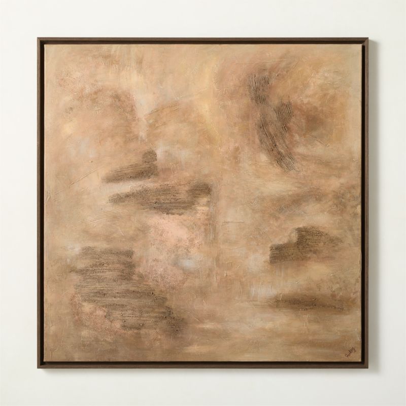 Using washes and drips of paint, Ruby builds layers to bring an ethereal quality to "Canyon." By applying paint and washing it off with a sponge, the artist creates depth without heaviness. "This painting went through a lot of changes—all leading to its final look. I thought of the title as I was making it. Canyon—as in the Grand Canyon," Ruby explains. Presented in an FSC ®-certified wood frame finished in black oak. CB2 exclusive.