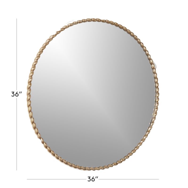 Inspired by the look of rope, solid brass delicately twists to frame the round mirror by