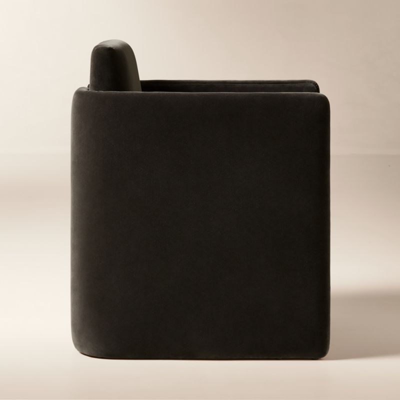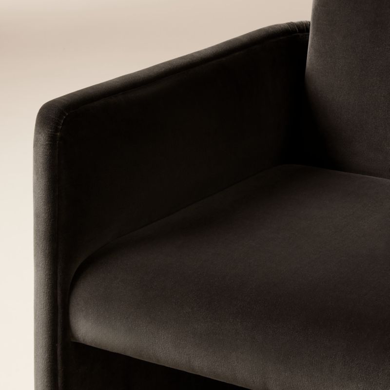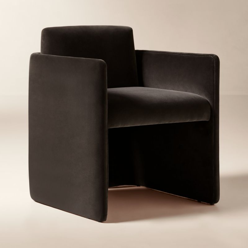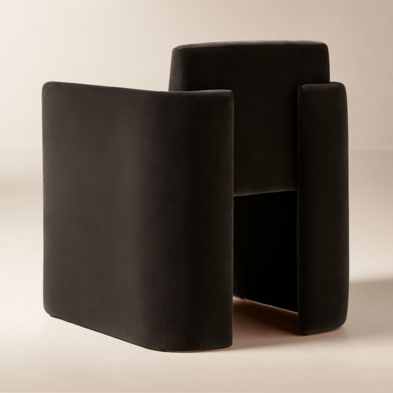 Designed by Studio ANANSI, velvet stool brings modern drama to the kitchen counter. Wide legs wrap around a floating seat with a gently rounded back for a supportive sit. Crafted of FSC ®-certified solid oak, the stool is fully upholstered in a versatile mink velvet as a soft finishing touch. CB2 exclusive.