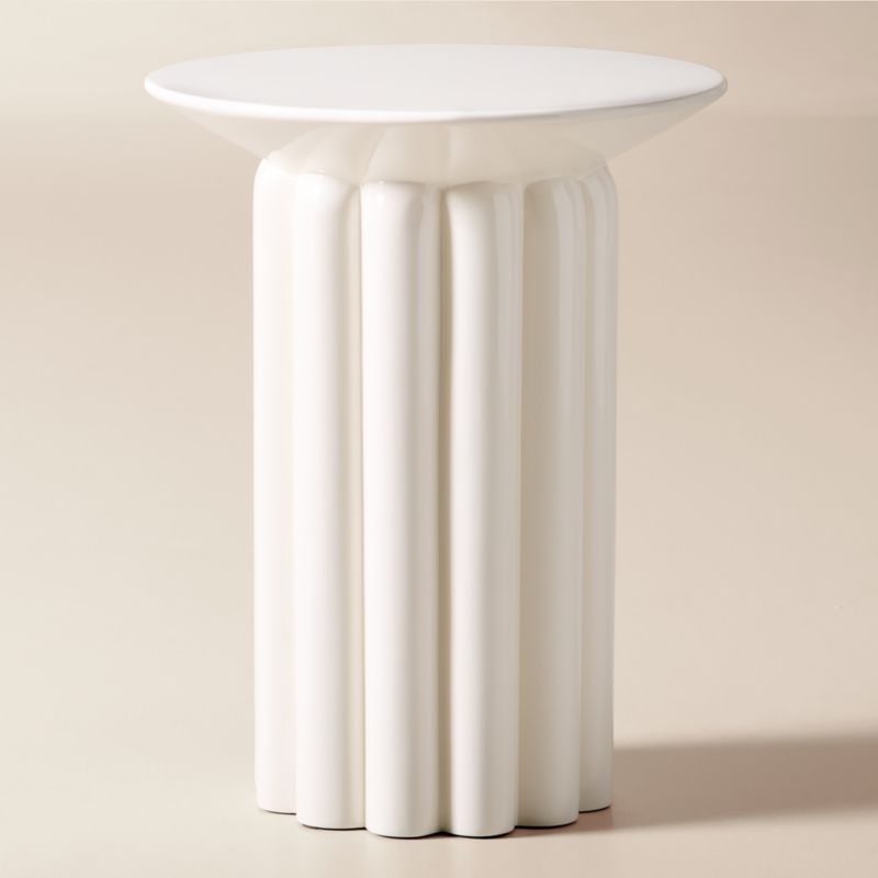 Scalloped side table by Brooklyn-based Caleb Zipperer sports a modern high-gloss finish. CB2 exclusive.