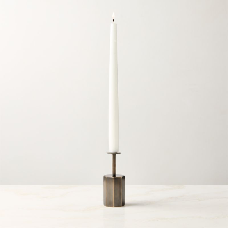 Inspired by modern Parisian interiors, blackened brass taper holder designed by