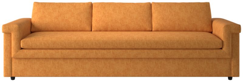 "I wanted Ceva to have interest from all angles," says designer Ceci Thompson of the Melbourne-based design studio VUUE. Framed in kiln-dried hardwood for durability, the sofa's wide frame wraps around the long bench seat and back cushions in one continuous line for a low, loungy seat. Plush feather and down cushions ensure long-lasting comfort while softening the design's strong lines. Hand-assembled by craftspeople at a family-owned-and-operated company in North Carolina, Ceva is upholstered in a natural-toned performance fabric for a soft, textured hand that's durable and easy to clean. CB2 exclusive.