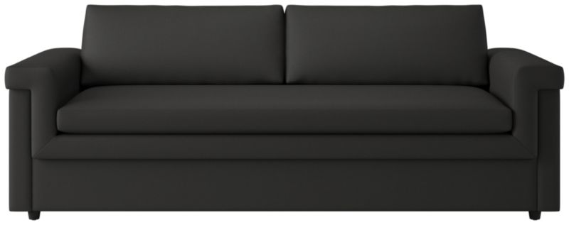 "I wanted Ceva to have interest from all angles," says designer Ceci Thompson of Melbourne-based VUUE. The wide frame wraps around the plush bench seat and back cushions in a continuous line to make a statement. "The arms are integrated into the form, contributing to the feeling of being enveloped in softness, while the underlying geometry provides definition." Sleeper sofa effortlessly stretches into a queen bed for overnight guests. CB2 exclusive.