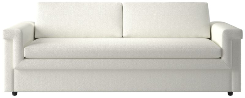 "I wanted Ceva to have interest from all angles," says designer Ceci Thompson of Melbourne-based VUUE. The wide frame wraps around the plush bench seat and back cushions in a continuous line to make a statement. "The arms are integrated into the form, contributing to the feeling of being enveloped in softness, while the underlying geometry provides definition." Sleeper sofa effortlessly stretches into a queen bed for overnight guests. CB2 exclusive.