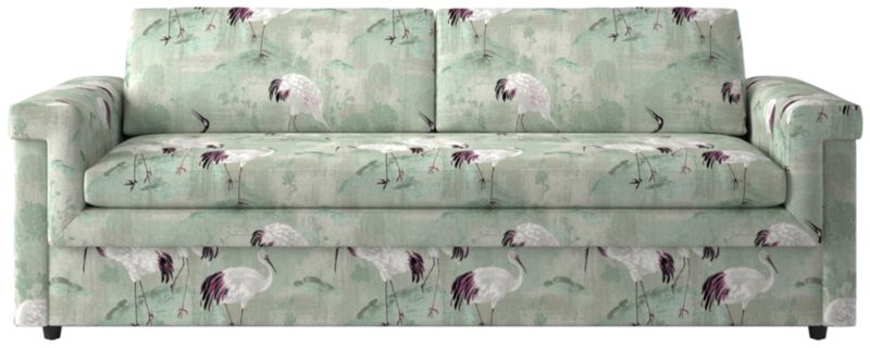 "I wanted Ceva to have interest from all angles," says designer Ceci Thompson of Melbourne-based VUUE. The wide frame wraps around the plush bench seat and back cushions in a continuous line to make a statement. "The arms are integrated into the form, contributing to the feeling of being enveloped in softness, while the underlying geometry provides definition." Sleeper sofa effortlessly stretches into a queen bed for overnight guests. CB2 exclusive.