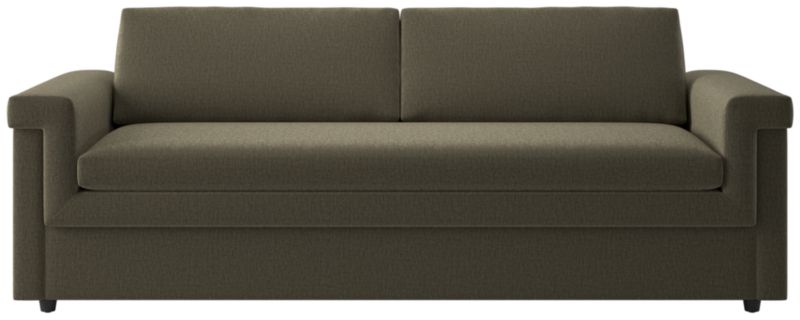 "I wanted Ceva to have interest from all angles," says designer Ceci Thompson of Melbourne-based VUUE. The wide frame wraps around the plush bench seat and back cushions in a continuous line to make a statement. "The arms are integrated into the form, contributing to the feeling of being enveloped in softness, while the underlying geometry provides definition." Sleeper sofa effortlessly stretches into a queen bed for overnight guests. CB2 exclusive.