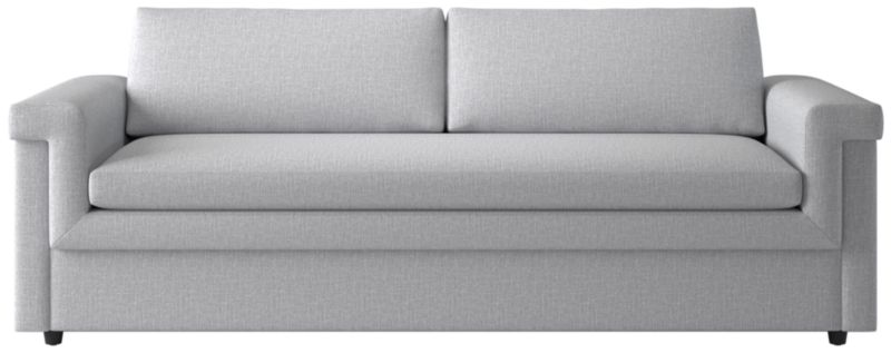 "I wanted Ceva to have interest from all angles," says designer Ceci Thompson of Melbourne-based VUUE. The wide frame wraps around the plush bench seat and back cushions in a continuous line to make a statement. "The arms are integrated into the form, contributing to the feeling of being enveloped in softness, while the underlying geometry provides definition." Sleeper sofa effortlessly stretches into a queen bed for overnight guests. CB2 exclusive.
