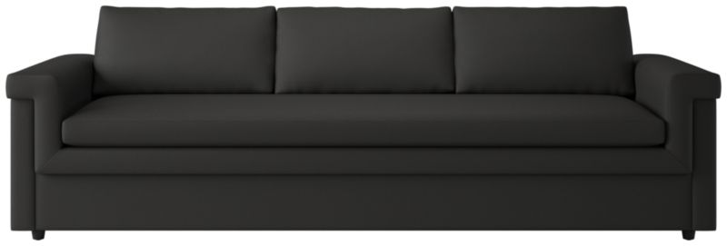 "I wanted Ceva to have interest from all angles," says designer Ceci Thompson of the Melbourne-based design studio VUUE. Framed in kiln-dried hardwood for durability, the sofa's wide frame wraps around the long bench seat and back cushions in one continuous line for a low, loungy seat. Plush feather and down cushions ensure long-lasting comfort while softening the design's strong lines. Hand-assembled by craftspeople at a family-owned-and-operated company in North Carolina, Ceva is upholstered in a natural-toned performance fabric for a soft, textured hand that's durable and easy to clean. CB2 exclusive.
