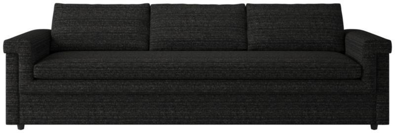 "I wanted Ceva to have interest from all angles," says designer Ceci Thompson of the Melbourne-based design studio VUUE. Framed in kiln-dried hardwood for durability, the sofa's wide frame wraps around the long bench seat and back cushions in one continuous line for a low, loungy seat. Plush feather and down cushions ensure long-lasting comfort while softening the design's strong lines. Hand-assembled by craftspeople at a family-owned-and-operated company in North Carolina, Ceva is upholstered in a natural-toned performance fabric for a soft, textured hand that's durable and easy to clean. CB2 exclusive.