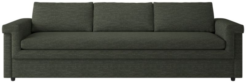 "I wanted Ceva to have interest from all angles," says designer Ceci Thompson of the Melbourne-based design studio VUUE. Framed in kiln-dried hardwood for durability, the sofa's wide frame wraps around the long bench seat and back cushions in one continuous line for a low, loungy seat. Plush feather and down cushions ensure long-lasting comfort while softening the design's strong lines. Hand-assembled by craftspeople at a family-owned-and-operated company in North Carolina, Ceva is upholstered in a natural-toned performance fabric for a soft, textured hand that's durable and easy to clean. CB2 exclusive.