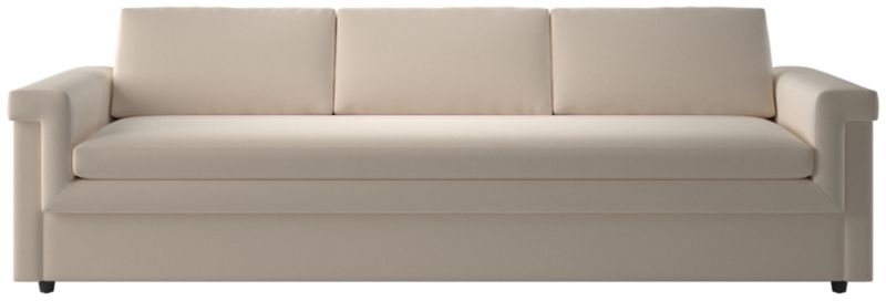 "I wanted Ceva to have interest from all angles," says designer Ceci Thompson of the Melbourne-based design studio VUUE. Framed in kiln-dried hardwood for durability, the sofa's wide frame wraps around the long bench seat and back cushions in one continuous line for a low, loungy seat. Plush feather and down cushions ensure long-lasting comfort while softening the design's strong lines. Hand-assembled by craftspeople at a family-owned-and-operated company in North Carolina, Ceva is upholstered in a natural-toned performance fabric for a soft, textured hand that's durable and easy to clean. CB2 exclusive.