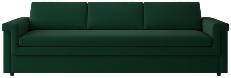 "I wanted Ceva to have interest from all angles," says designer Ceci Thompson of the Melbourne-based design studio VUUE. Framed in kiln-dried hardwood for durability, the sofa's wide frame wraps around the long bench seat and back cushions in one continuous line for a low, loungy seat. Plush feather and down cushions ensure long-lasting comfort while softening the design's strong lines. Hand-assembled by craftspeople at a family-owned-and-operated company in North Carolina, Ceva is upholstered in a natural-toned performance fabric for a soft, textured hand that's durable and easy to clean. CB2 exclusive.