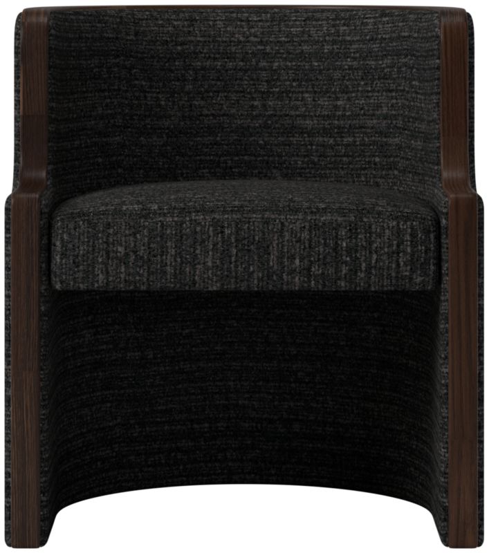 Classic-meets-contemporary barrel chair by Brett Beldock is wrapped in fabric and outlined by a thick band of solid American red oak certified sustainable by the Forest Stewardship Council®. Makes a bold statement as an end chair or can be used as a side chair. CB2 exclusive.