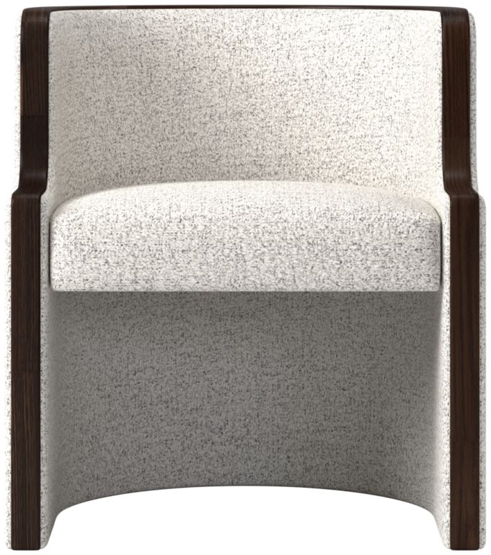 Classic-meets-contemporary barrel chair by Brett Beldock is wrapped in fabric and outlined by a thick band of solid American red oak certified sustainable by the Forest Stewardship Council®. Makes a bold statement as an end chair or can be used as a side chair. CB2 exclusive.