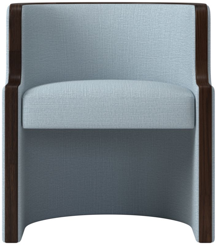 Classic-meets-contemporary barrel chair by Brett Beldock is wrapped in fabric and outlined by a thick band of solid American red oak certified sustainable by the Forest Stewardship Council®. Makes a bold statement as an end chair or can be used as a side chair. CB2 exclusive.