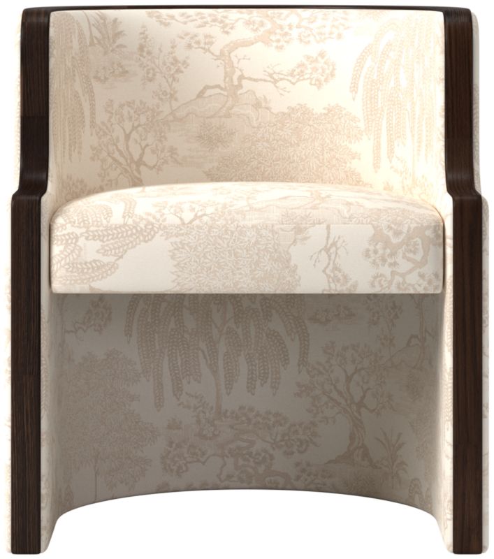 Classic-meets-contemporary barrel chair by Brett Beldock is wrapped in fabric and outlined by a thick band of solid American red oak certified sustainable by the Forest Stewardship Council®. Makes a bold statement as an end chair or can be used as a side chair. CB2 exclusive.