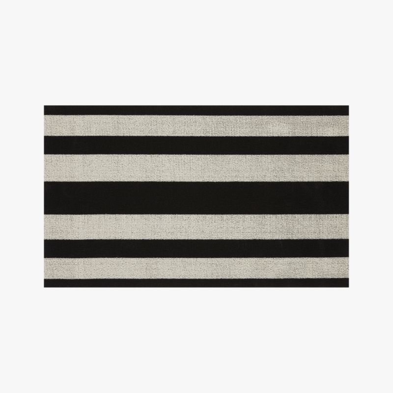 Made exclusively for CB2, this modern grey and black stripe floor mat is tufted from durable yarns for a textured look that's perfect for bathrooms, kitchens, patios and entryways. Hard wearing vinyl resists mold. So easy to clean, just vacuum, shake or hose off.