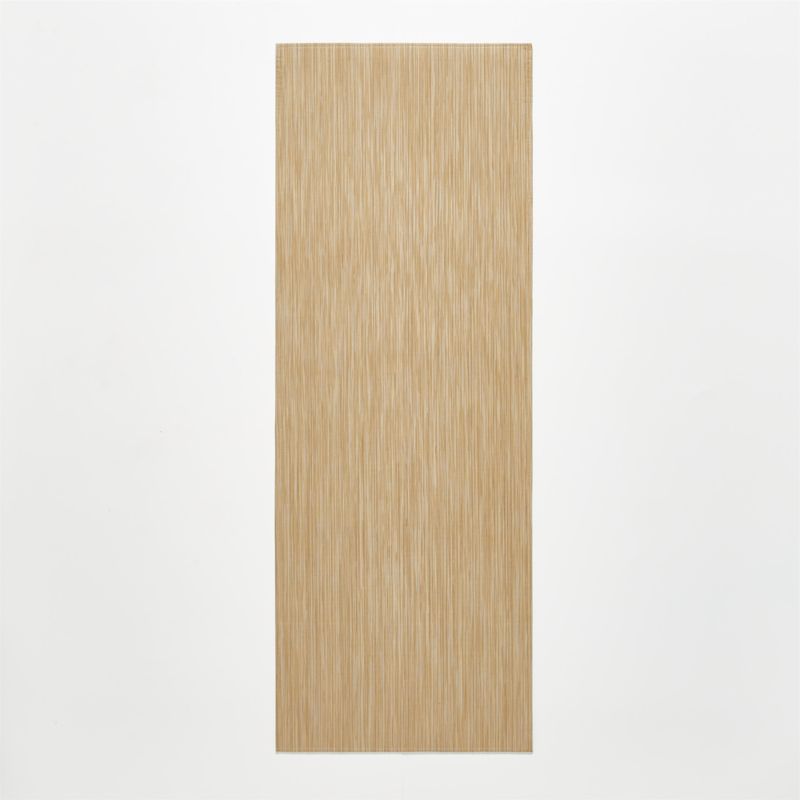 Indoor/outdoor floor mat by Chilewich® marries a melange of striated butterscotch tones in a texturally pleasing rib weave. Made with innovative phthalate-free TerraStrand yarns and latex, it contains recycled and rapidly renewable content.