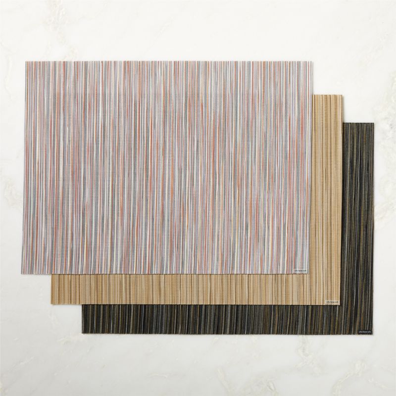 Rib-weave placemat by Chilewich® has the beautiful look of natural fibers, yet is exceptionally durable and easy to care for. A medley of dark, moody colors in subtle striations adds rich texture to any place setting, indoors or outdoors.