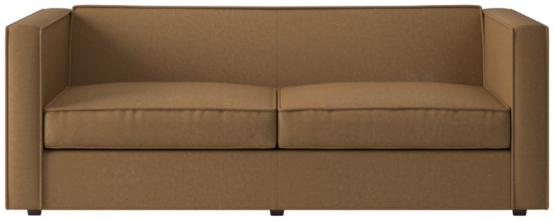 Assembled in North Carolina, leather sofa is perfectly proportioned for stretching out solo or hanging with a crowd. We love the impromptu feel of the intentional seat cushion overhang and back that curves to support just where you need it. CB2 exclusive.