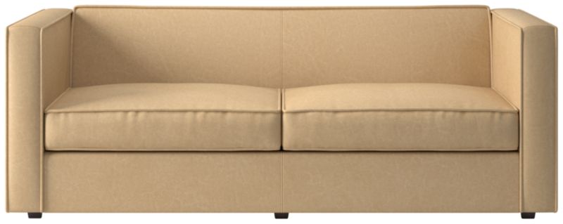 Assembled in North Carolina, leather sofa is perfectly proportioned for stretching out solo or hanging with a crowd. We love the impromptu feel of the intentional seat cushion overhang and back that curves to support just where you need it. CB2 exclusive.