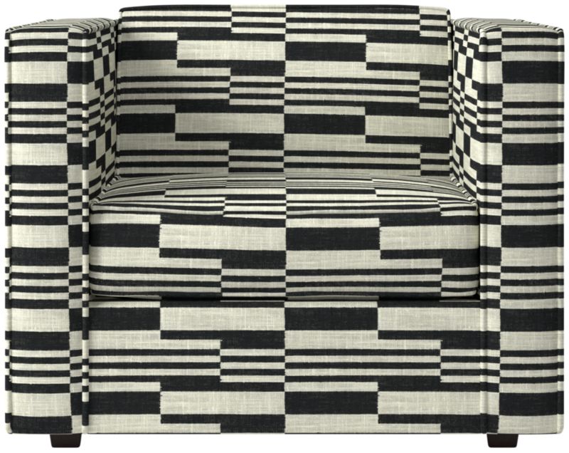 Our popular club chair squares up refined new proportions, scaled down ever so slightly with a fresh attitude. Exaggerated flange outlines boxy design that says 'this is my space.' Love the impromptu feel of the intentional seat cushion overhang and super comfy back that curves to relax/support just where you need it.