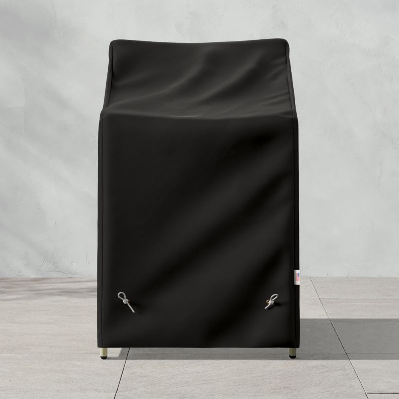 Keep your Colombe outdoor dining armchair looking great for seasons to come. Lightweight and durable cover is uniquely woven to resist wear and fading. One-way breathable fabric allows moisture to evaporate while water-resistant finish protects against rain, snow and sleet. Cover stays put with a clip-and-cord system. Cover comes with a pouch for neat storage. CB2 exclusive.
