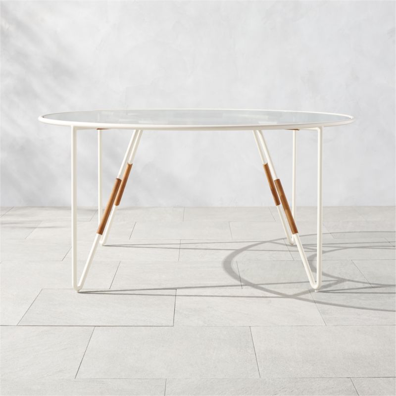 Keep your Colombe outdoor dining table looking great for seasons to come. Lightweight and durable cover is uniquely woven to resist wear and fading. One-way breathable fabric allows moisture to evaporate while water-resistant finish protects against rain, snow and sleet. Cover stays put with a clip-and-cord system. Cover comes with a pouch for neat storage. CB2 exclusive.