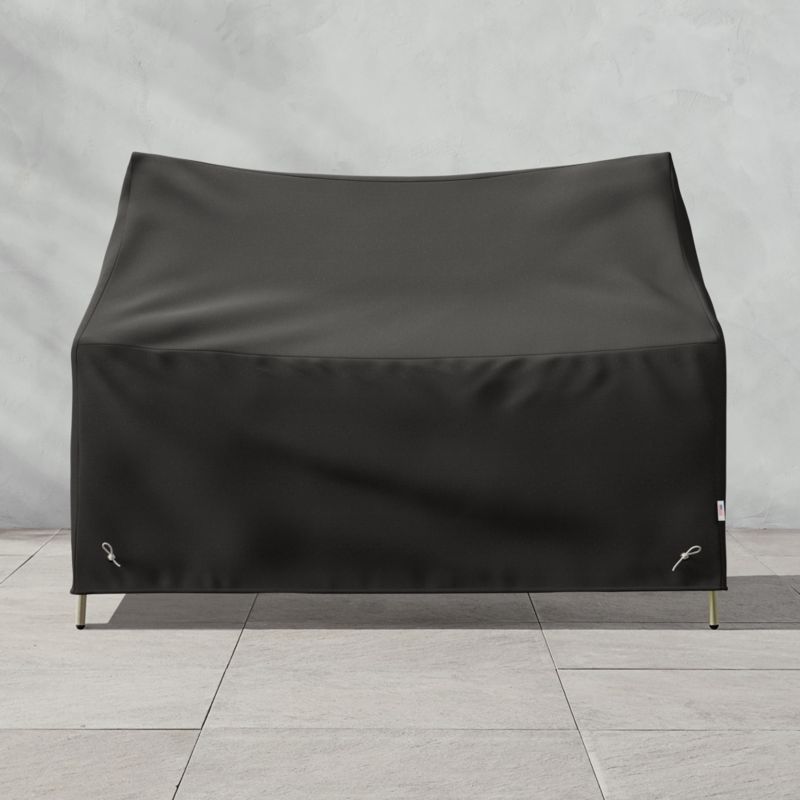 Keep your Colombe outdoor loveseat looking great for seasons to come. Lightweight and durable cover is uniquely woven to resist wear and fading. One-way breathable fabric allows moisture to evaporate while water-resistant finish protects against rain, snow and sleet. Cover stays put with a clip-and-cord system. Cover comes with a pouch for neat storage. CB2 exclusive.