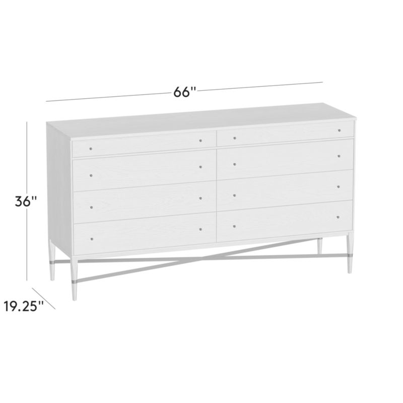 Slender lines, fine veneers and the architectural detailing of Paul McCobb's Connoisseur eight-drawer dresser are just as elegant today as they were when first introduced in 1954. Crafted of stained FSC ®-certified American white oak, the Scandinavian-influenced dresser is accented with solid brass pulls and a crossbar between the legs. CB2 exclusive.