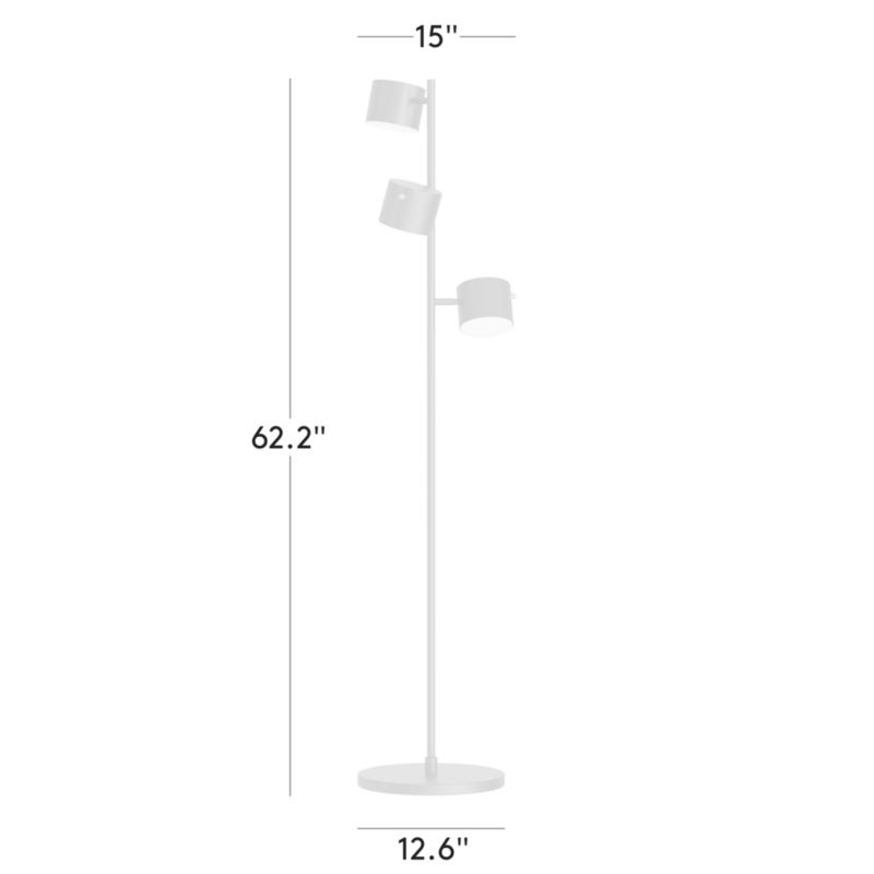 Articulating floor lamp by Jannis Ellenberger shines a spotlight where needed. Independently functioning shades sit on a base of champagne-finished iron, rotating to illuminate open books or curated artworks. Dimmer switches on each shade allow for a customized lighting moment. CB2 exclusive.