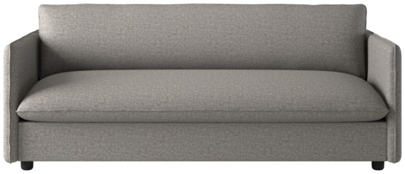 Built on a thin frame, Italian-inspired sofa brings a sense of lightness despite its oversized proportions. Transitioning easily between formal and informal settings, the sofa's slim silhouette and seamless armrests offer a modern aesthetic, while flange-trimmed linen upholstery in a tonal neutral nods to more traditional influences. CB2 exclusive.