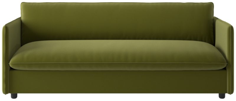 Built on a thin frame, Italian-inspired sofa brings a sense of lightness despite its oversized proportions. Transitioning easily between formal and informal settings, the sofa's slim silhouette and seamless armrests offer a modern aesthetic, while flange-trimmed linen upholstery in a tonal neutral nods to more traditional influences. CB2 exclusive.