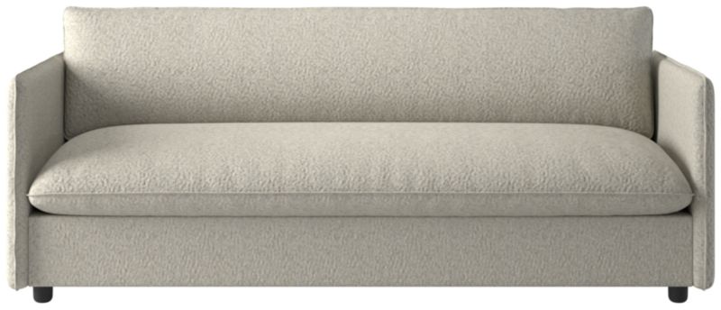 Built on a thin frame of kiln-dried engineered hardwood, Italian-inspired sleeper sofa brings a sense of lightness despite its oversized proportions. Transitioning easily between formal and informal settings, the sofa's slim silhouette and seamless armrests offer a modern aesthetic, while flange-trimmed linen upholstery in a tonal neutral nods to more traditional influences. Sleeper sofa unfurls to reveal a 5" thick queen mattress made with gel-infused memory foam for maximum comfort. CB2 exclusive.