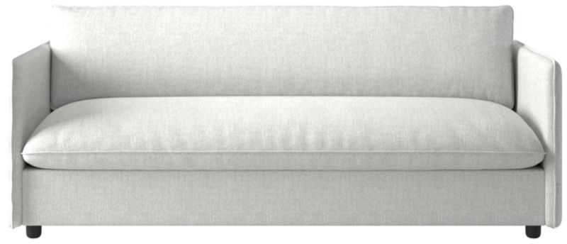 Built on a thin frame of kiln-dried engineered hardwood, Italian-inspired sleeper sofa brings a sense of lightness despite its oversized proportions. Transitioning easily between formal and informal settings, the sofa's slim silhouette and seamless armrests offer a modern aesthetic, while flange-trimmed linen upholstery in a tonal neutral nods to more traditional influences. Sleeper sofa unfurls to reveal a 5" thick queen mattress made with gel-infused memory foam for maximum comfort. CB2 exclusive.