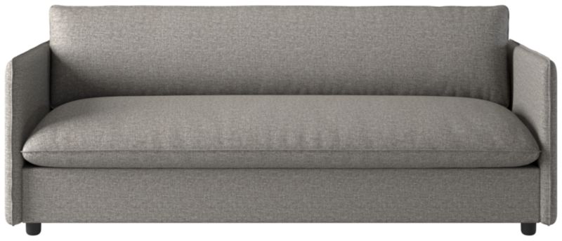 Built on a thin frame of kiln-dried engineered hardwood, Italian-inspired sleeper sofa brings a sense of lightness despite its oversized proportions. Transitioning easily between formal and informal settings, the sofa's slim silhouette and seamless armrests offer a modern aesthetic, while flange-trimmed linen upholstery in a tonal neutral nods to more traditional influences. Sleeper sofa unfurls to reveal a 5" thick queen mattress made with gel-infused memory foam for maximum comfort. CB2 exclusive.