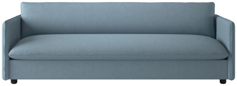Built on a thin frame, Italian-inspired sofa brings a sense of lightness despite its oversized proportions. Transitioning easily between formal and informal settings, the sofa's slim silhouette and seamless armrests offer a modern aesthetic, while flange-trimmed linen upholstery in a tonal neutral nods to more traditional influences. CB2 exclusive.