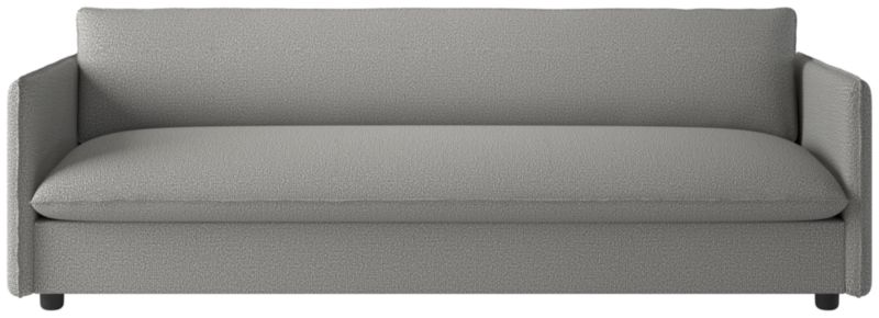Built on a thin frame, Italian-inspired sofa brings a sense of lightness despite its oversized proportions. Transitioning easily between formal and informal settings, the sofa's slim silhouette and seamless armrests offer a modern aesthetic, while flange-trimmed linen upholstery in a tonal neutral nods to more traditional influences. CB2 exclusive.