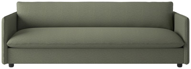 Built on a thin frame, Italian-inspired sofa brings a sense of lightness despite its oversized proportions. Transitioning easily between formal and informal settings, the sofa's slim silhouette and seamless armrests offer a modern aesthetic, while flange-trimmed linen upholstery in a tonal neutral nods to more traditional influences. CB2 exclusive.