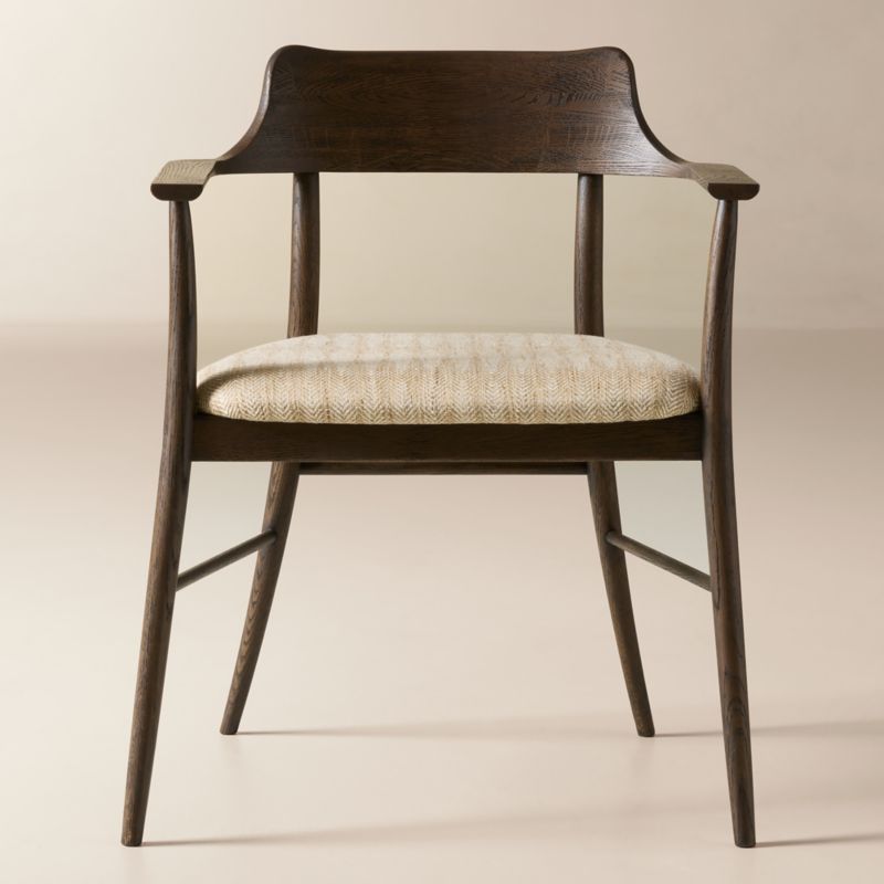 Informed by Shaker designs in its details, upholstered dining armchair by award-winning American midcentury designer