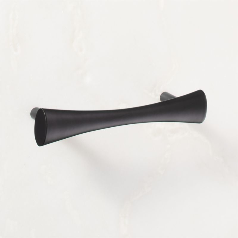 Mermelada Estudio is crafted of solid brass with a matte black finish. Offering a comfortable grip, the refined design is inspired by a bow tie—thin in the center and flared at each end. Designed to coordinate with the Cravat knob. CB2 exclusive.